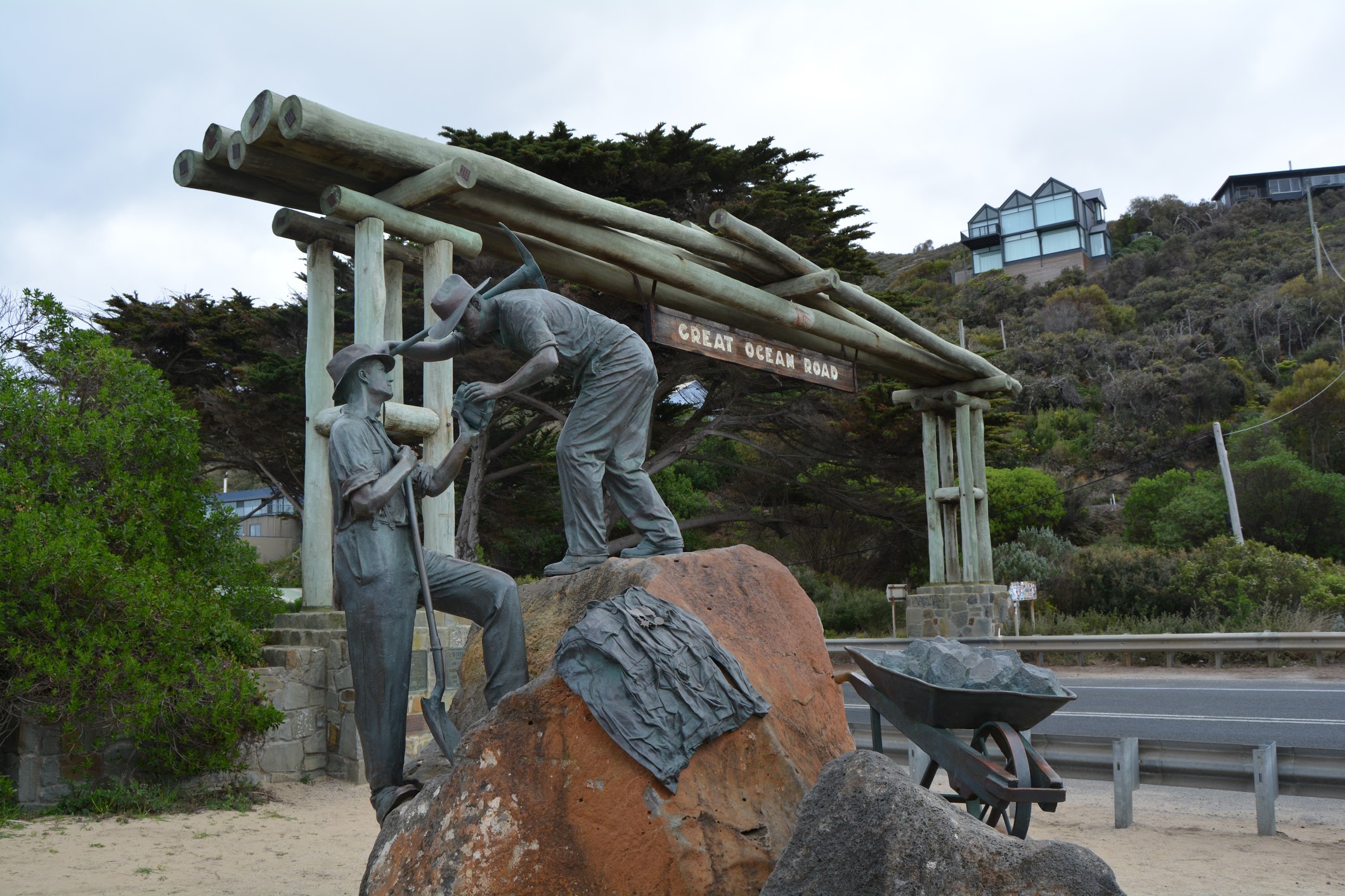 Great Ocean Road Memorial Arch Statue of workers in foreground