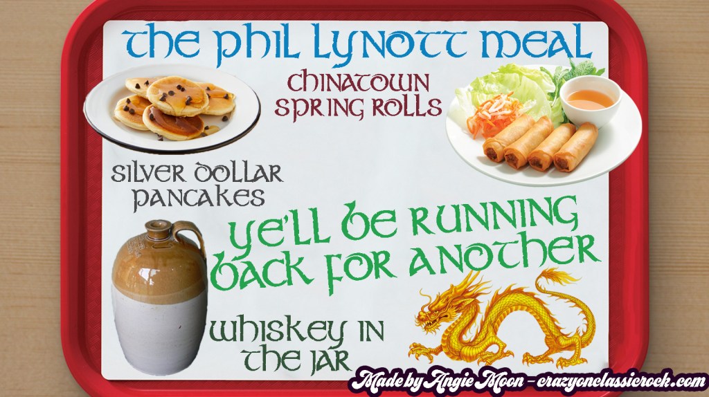 You know I had to make a Phil Lynott meal! And this one is really good! I’d totally order this, but I’ll skip the whiskey. I can eat a whole platter of spring rolls, no joke! And pancakes are the best with peanut butter and maple syrup.