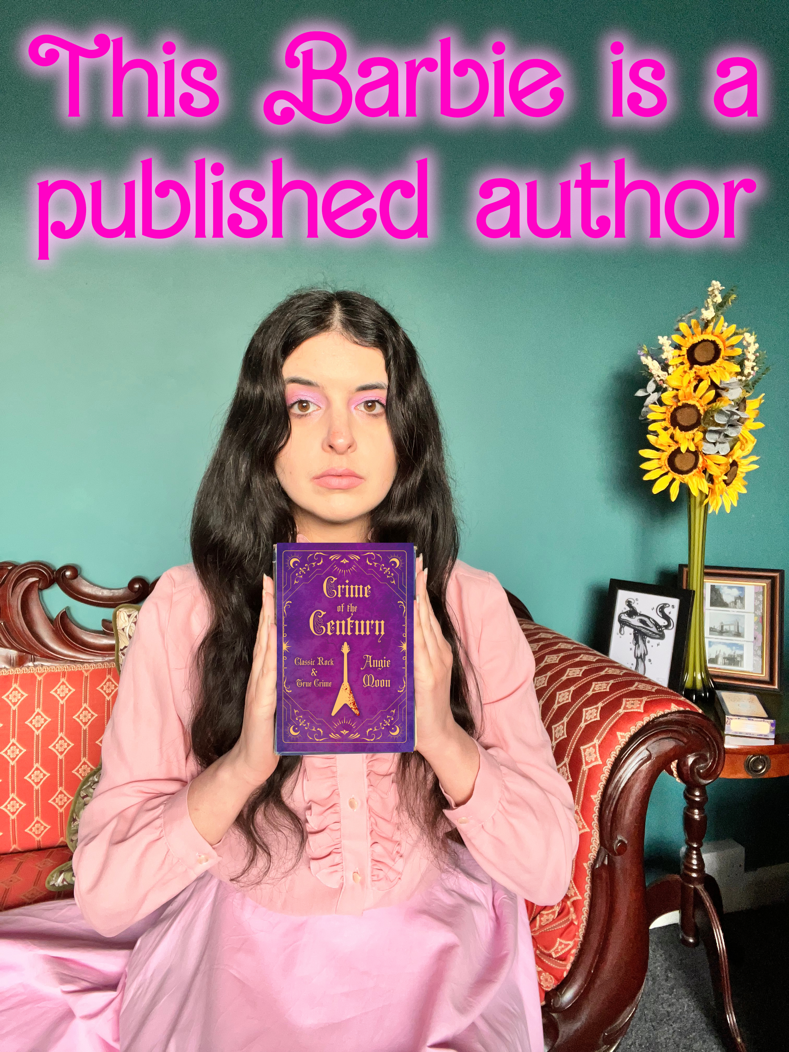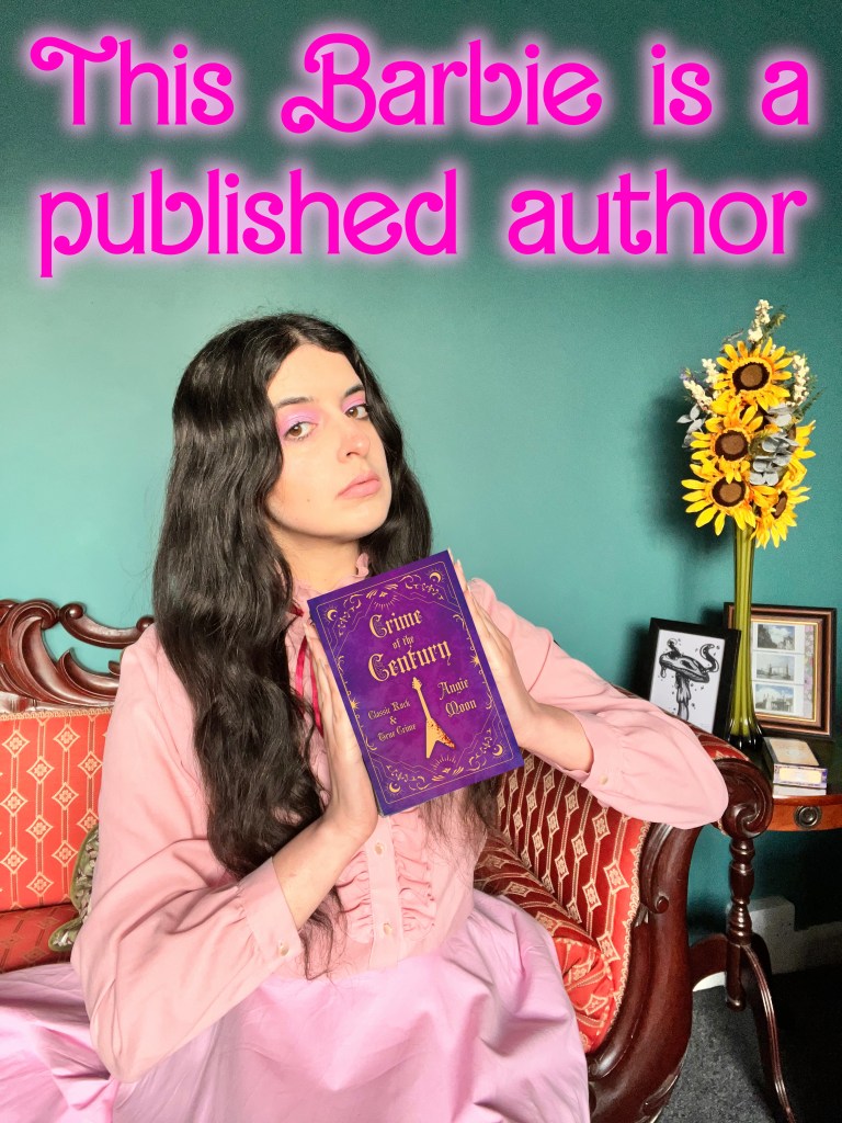 Here’s the Barbie promo I did for my book. Remember the “This Barbie is a…” meme that people made last summer? Well here’s mine and I can finally officially say it. This Barbie is a published author and it happened during Women’s History Month no less! Maybe not a best-seller but it’s a book I’m proud of and it’s the book I wanted to write. The outfit was a mix of 50s and 60s. The skirt was from a 50s reproduction clothing brand called Vivien of Holloway and the blouse is a vintage frilly shirt from either the 60s or 70s. Not quite the same pink, but I think it’s a look that’s totally me. In a sea of classic rock blogs where the themes are all quite dark, I tried to be the Barbie of them all and make my website more colourful. But don’t be fooled by the whimsical, playful look of the blog, I take what I do very seriously and pack my blog posts and book full of classic rock knowledge.