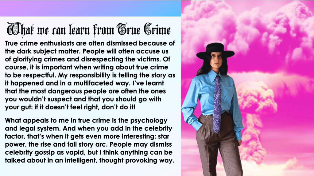 If you couldn’t make it to Coventry, no problem, I had my husband Eoin film the talk so you can watch it. I did not have a script and I didn’t practise beforehand. I really had no life for the last few years. All I was doing until recently was reading about true crime and rock and roll. It was like a PhD thesis compressed into a shorter period of time. If you follow me on Instagram, you can watch the talk here.