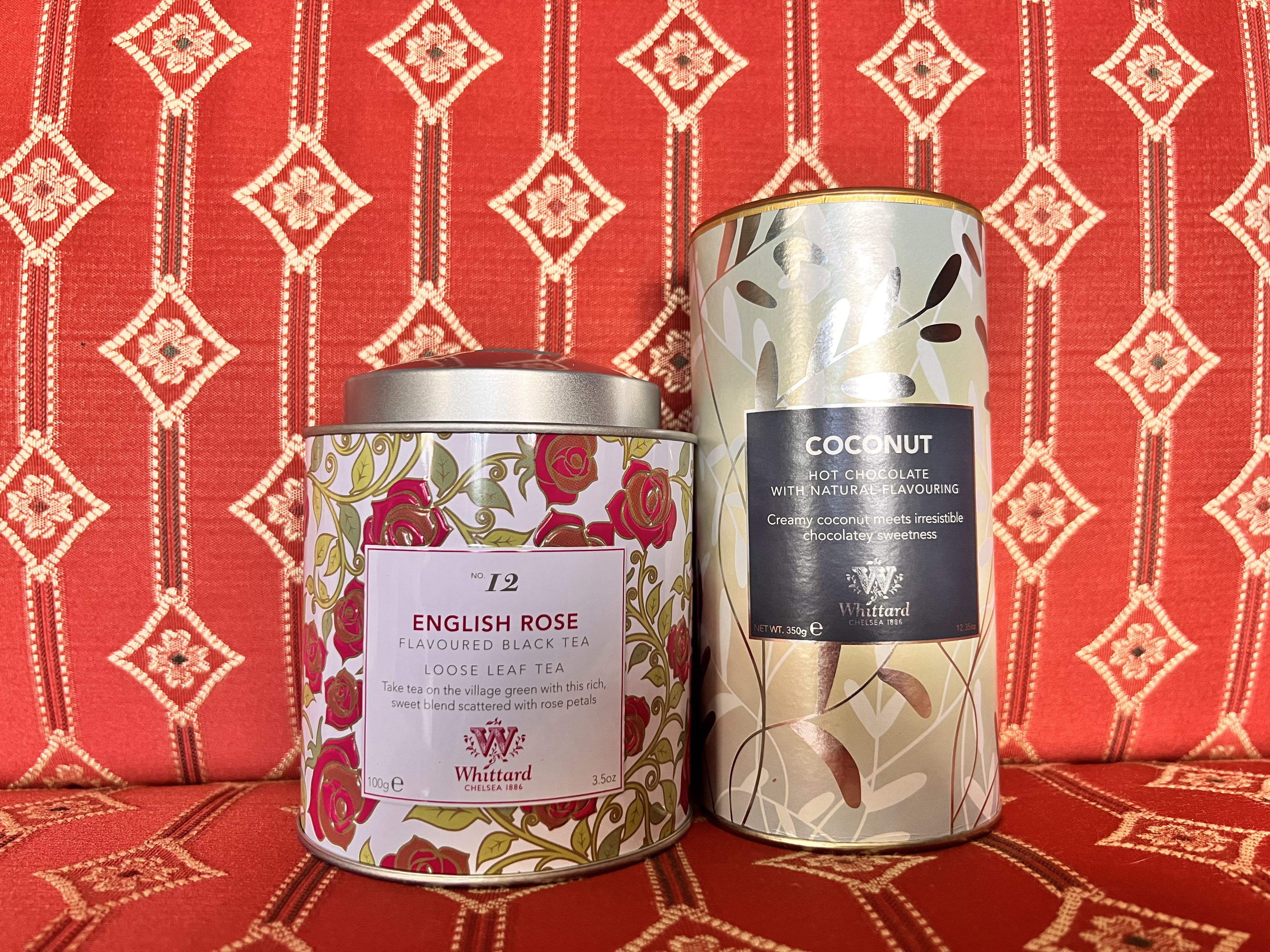 Besides vinyl, we bought some tea and hot chocolate from a shop called Whittard and it’s really good. The coconut hot chocolate mix is vegan and the tea we got was this rose flavoured black tea. I love the smell. They happened to have a sample of it out and well, we’re sold! The nice thing is they give discounts if you buy one of the sample teas.