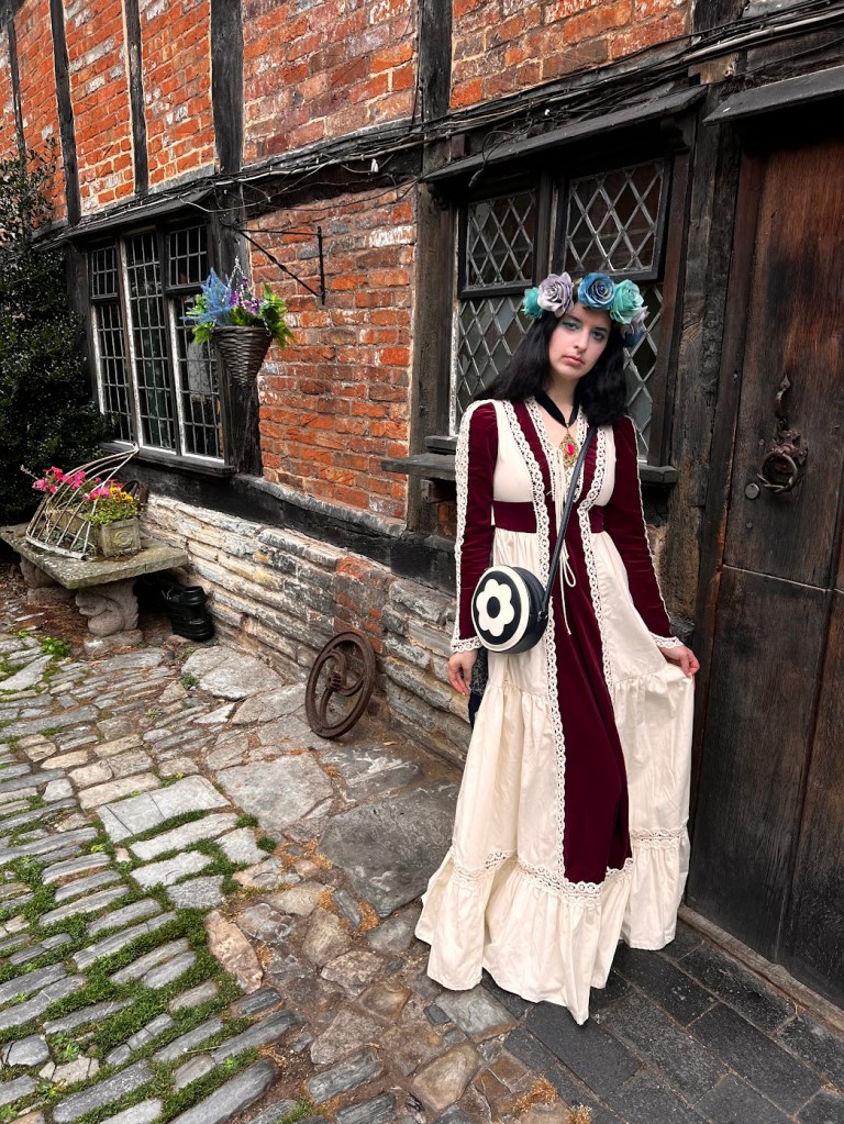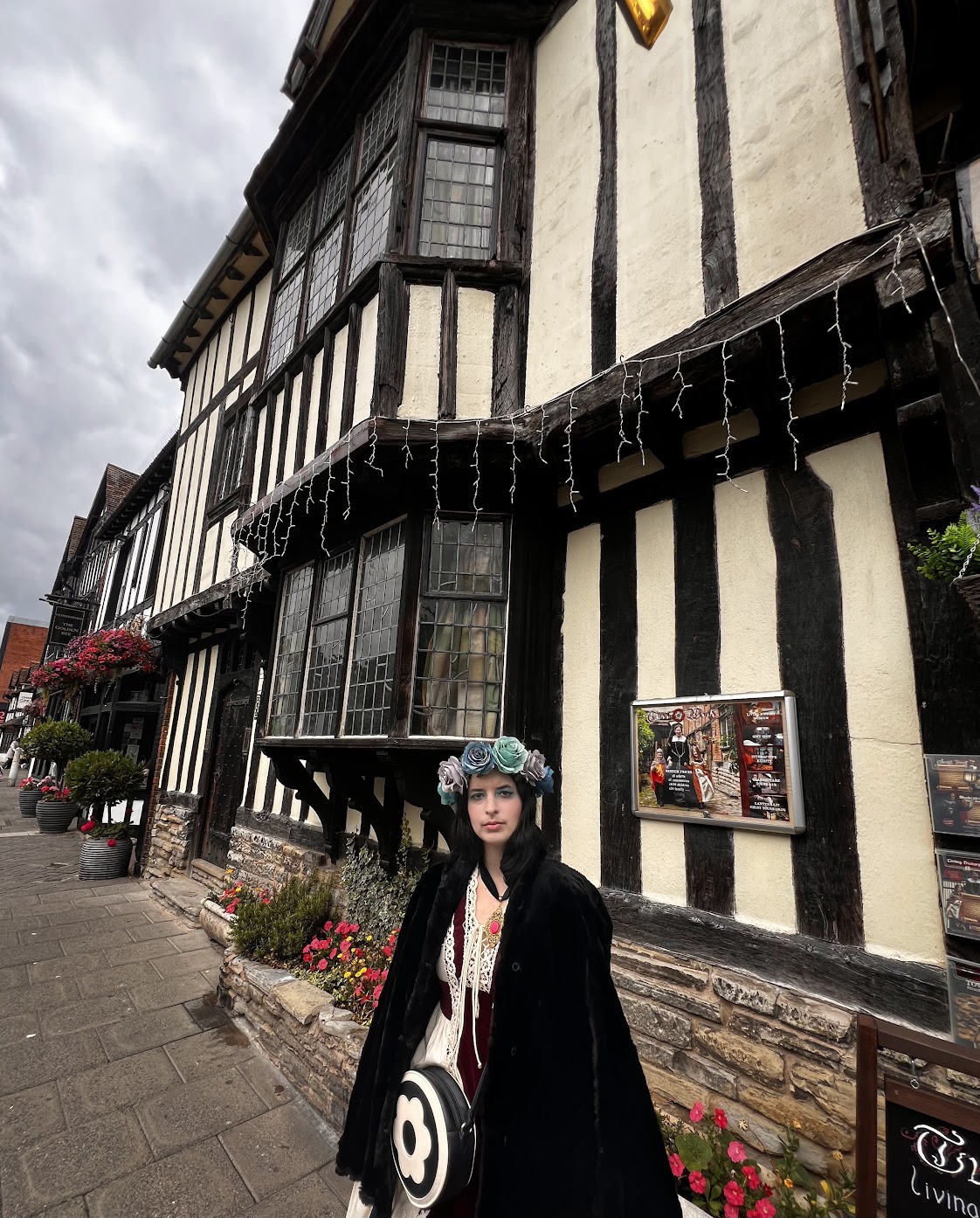 My in-laws wanted to do some touristy stuff and they saw this Tudor World place and treated us. It’s not something I’d personally spend my own money on, I’d rather spend the same amount or a little bit more and go to one of the many National Trust sites – I’ve always had a great experience with those. Tudor World is located inside a 16th century building and it depicts what life was like back in Shakespeare’s time. It calls itself a living history museum, but I wouldn’t say it is one because I didn’t see any historical re-enactors in there like you’d see at Colonial Williamsburg or the Black Country Living Museum. There is a walking tour with a re-enactor playing William Shakespeare, but we didn’t do it. Perhaps that would have been more interesting. Granted, the ticket price is much cheaper than those places, but it’s a much smaller museum and to me it felt like walking through a low budget, more tacky Warwick Castle meets Ripley’s Believe it Or Not than an actual museum, but in all fairness this isn’t the time period I’m most interested in. But I guess a lot of actual Tudor things are in a big museum like the V&A or British Museum. You could get through the museum in about 20-30 minutes. There were some tidbits that you’d expect from a Horrible Histories book, but it largely felt like a tourist trap to me. Kids might enjoy it more than grownups. It was nice to take pictures outside of and of course I had to wear my Gunne Sax dress, which got a compliment from a patron!