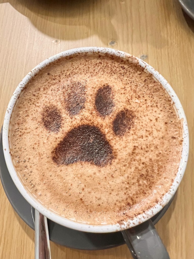 The Cat Cafe in Liverpool is better priced than the one we had in Coventry (I miss that place a lot!) and has unlimited drinks and some snacks available for purchase. It’s beautiful and looks very classic inside with Victorian looking wallpaper and cute old-fashioned looking portraits of cats on the wall. If you get a latte or a mocha, you’ll get really cute cat themed latte art. I’ll show you some pictures of the cat cafe: